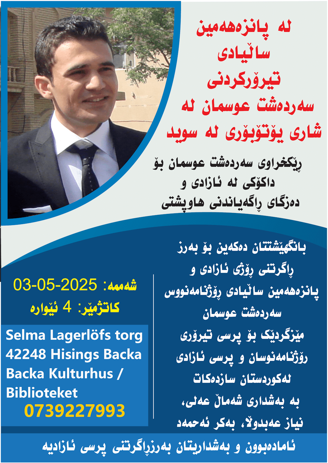 بانگهێشتتان دەکەین بۆ بەرز ڕاگرتنی ڕۆژی ئازادی و پانزەهەمین ساڵیادی ڕۆژنامەنووس سەردەشت عوسمان.