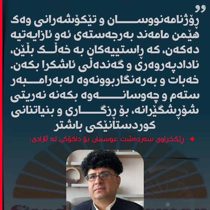 • وە بەرگریکردن لە ئازادی دەربڕین وەک بەردی بناغەی داهاتووی کوردستان.